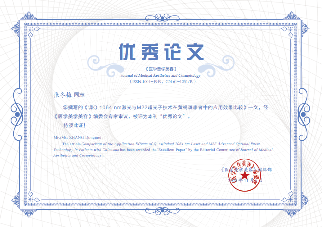 《调Q 1064 nm 激光与M22 超光子技术在黄褐斑患者中的应用效果比较