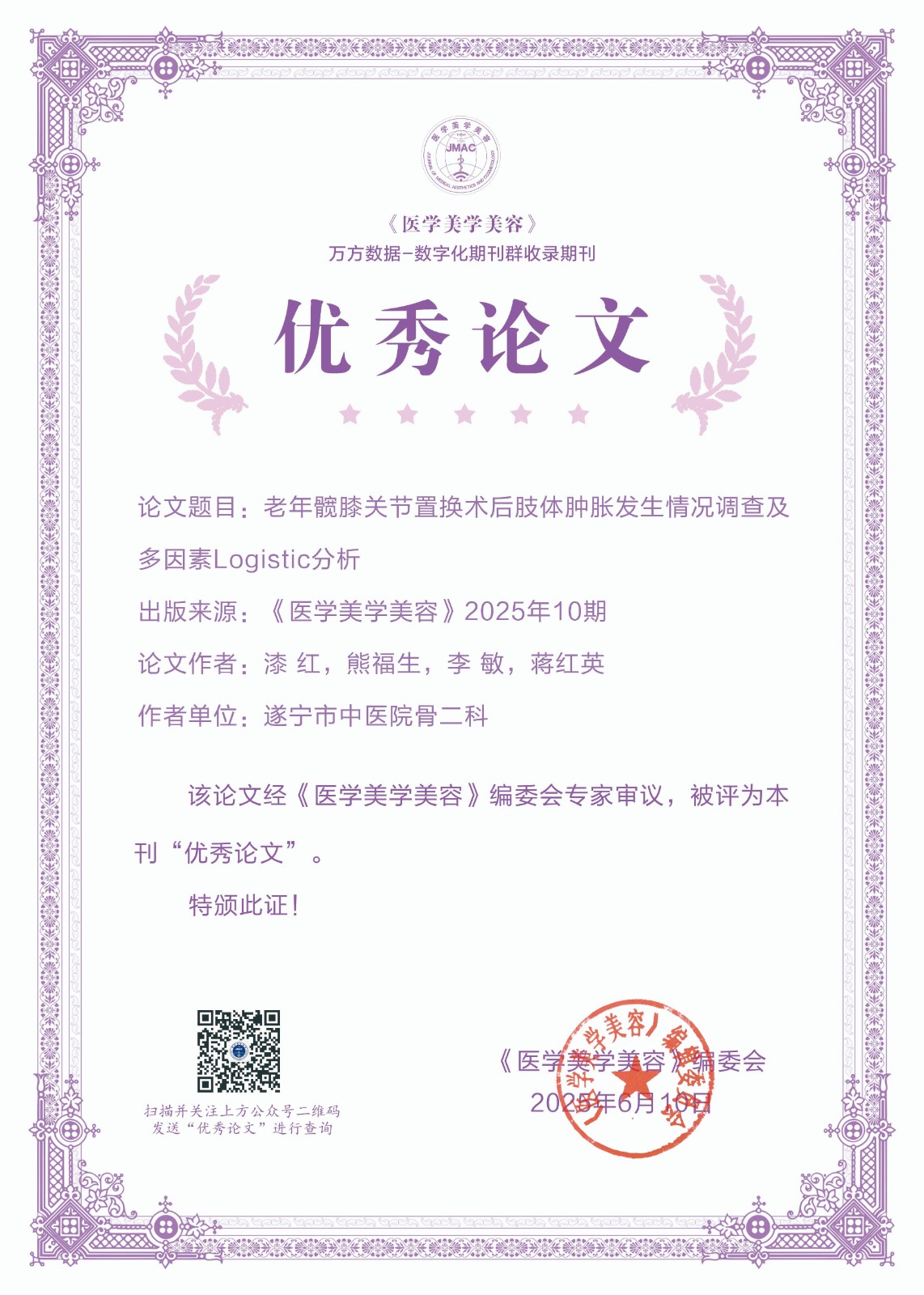 获奖论文02 《老年髋膝关节置换术后肢体肿胀发生情况调查及多因素Logistic分析》