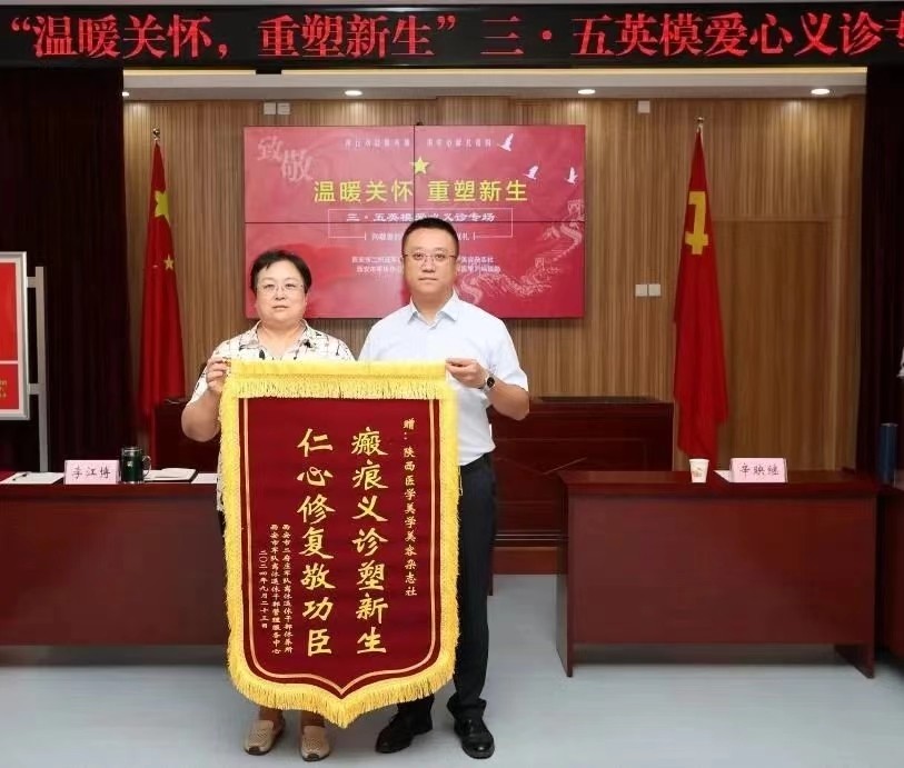 义诊期间,西安市二府庄军休所、西安市军休中心向陕西医学美学美容杂志社、《医学美学美容》编辑部和参加义诊的各位专家送出锦旗及感谢信,并致以最崇高的敬意和最诚挚的感谢!