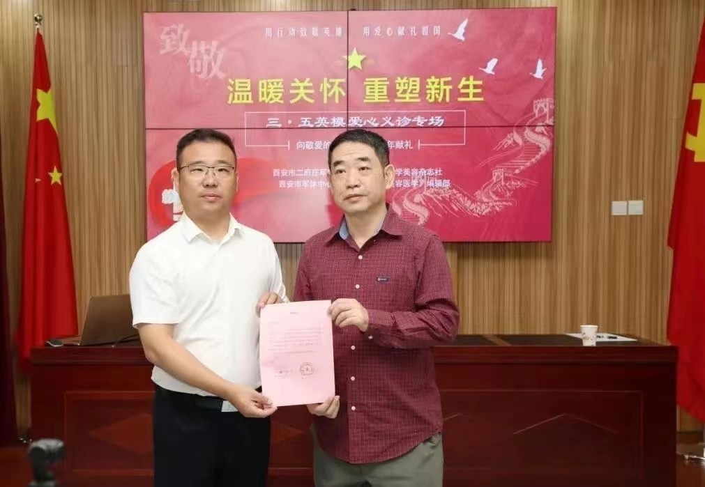 在新中国成立75周年来临之际,为认真贯彻落实习近平总书记对退役军人工作的重要指示精神,营造全社会尊崇军人、关爱退役军人的浓厚氛围。9 月 23日,西安市二府庄军休所、西安市军休中心邀请陕西医学美学美容杂志社、《医学美学美容》编辑部,举办“温暖关怀,重塑新生” 三·五英模爱心义诊专场活动。