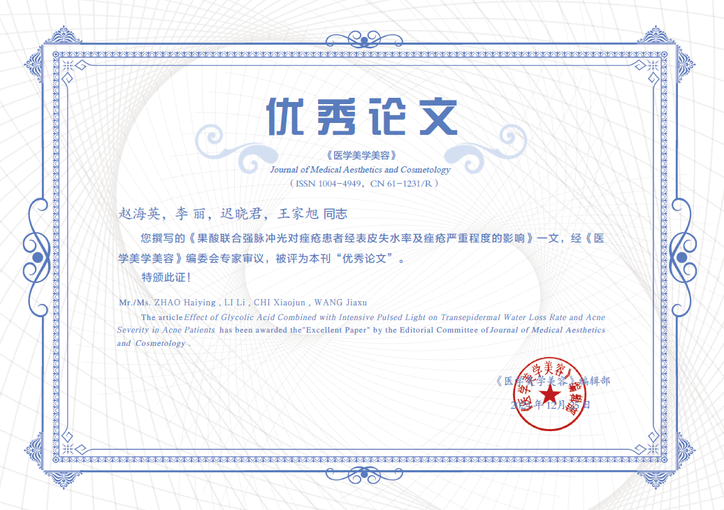 《果酸联合强脉冲光对痤疮患者经表皮失水率及痤疮严重程度的影响》